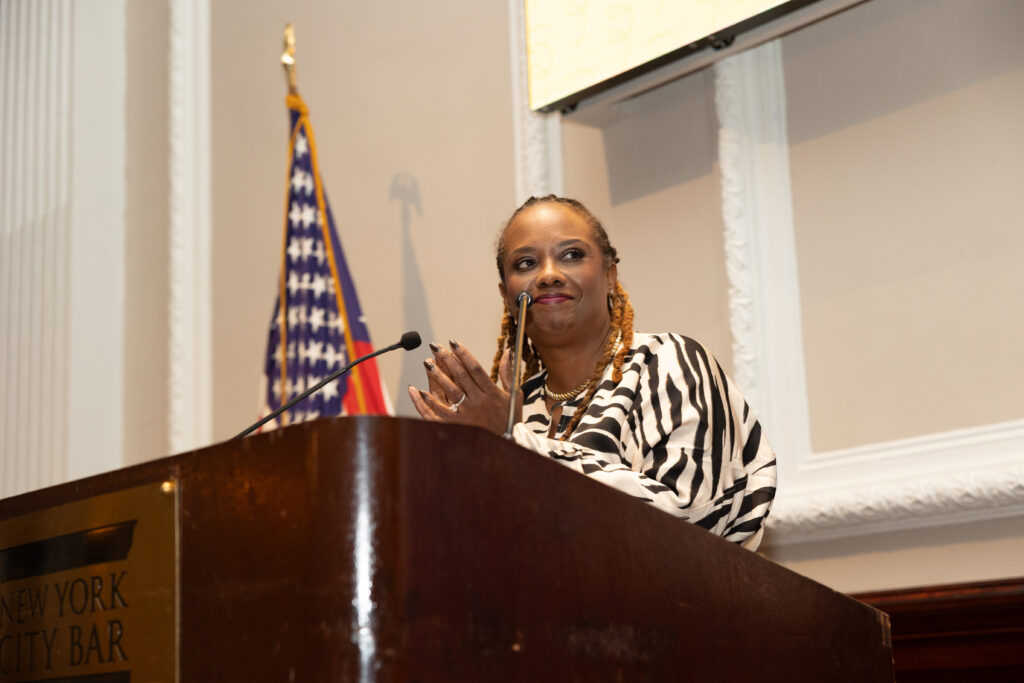Executive Director Liberty Aldrich addressed the room, stressing the tremendous need for CLC’s services that exists in Family Court—and the acute lack of resources to fulfill those needs.
